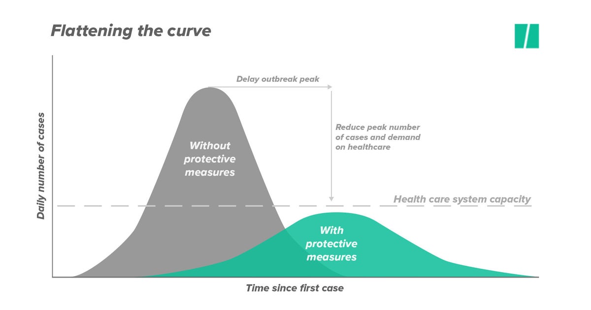 Đè bẹp đường cong để mua thời gian và giữ cho hệ thống y tế không bị sức ép quá lớn. Nguồn: HuffPost Canada