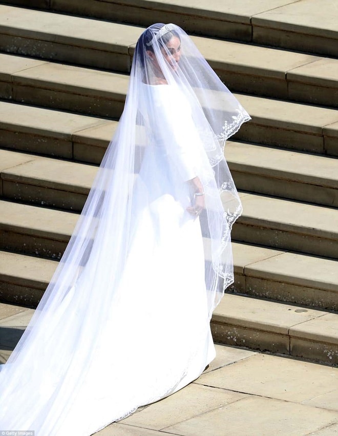 Tân Công nương nước Anh bước vào nhà nguyện thánh George trong chiếc váy cưới của nhà mốt cao cấp Givenchy do NTK Clare Waight Keller thiết kế. Điều bất ngờ là Waight Keller không nằm trong danh sách những cái tên nóng như: Ralph & Russo, David Emanuel hay Stella McCartney.